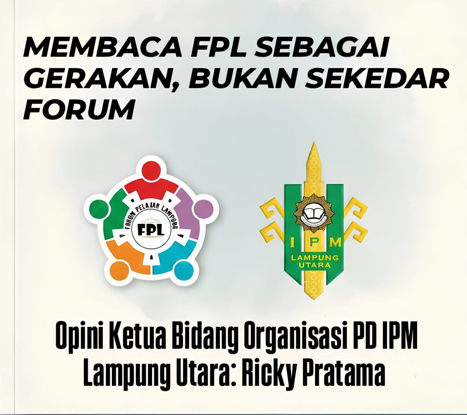 Sebagai Ketua Bidang Organisasi Pimpinan Daerah Ikatan Pelajar Muhammadiyah (PD IPM) Lampung Utara, saya berkeyakinan bahwa Forum Pelajar Lampung (FPL) adalah sebuah gerakan kolektif pelajar yang menjanjikan bukan sekadar forum diskusi atau organisasi eksklusif. Terlebih, ketika kita melihat bagaimana FPL tumbuh dan hadir di tingkat kabupaten termasuk di Lampung Utara, kita menjumpai bahwa FPL telah merepresentasikan semangat kreativitas, kolaborasi, dan aksi nyata bagi para pelajar untuk turut serta dalam perubahan sosial lokal yang lebih luas.